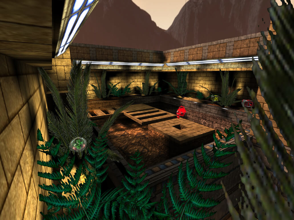 Ich habe früher gezockt wie ein Weltmeister. Was den Zeitaufwand angeht, nicht den Erfolg… Allerdings hat mir das reine Spielen schon bald nicht mehr genügt, ich wollte eigene Inhalte erstellen. Deshalb unter anderem verschiedene 3D-Umgebungen (Maps) für Quake 3 Arena. Heute könnte man diese Grafik auf einem Handy darstellen – damals war es state of the art...